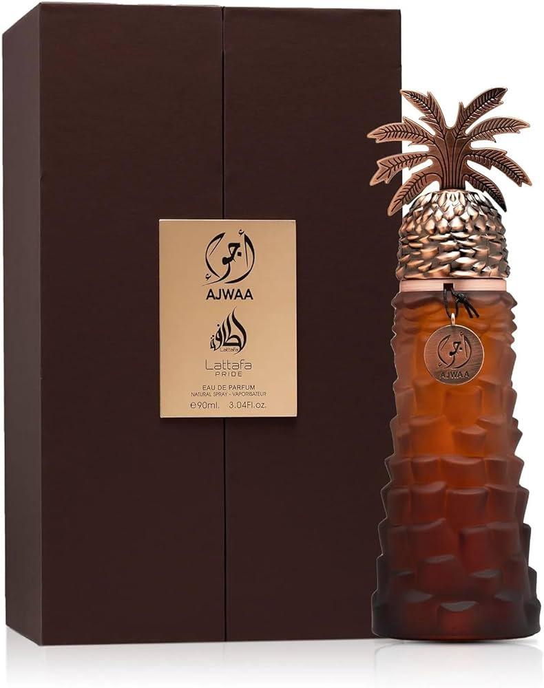 perfume Lattafa Ajwaa 100 ml unisex, fragancia oriental gourmand, perfume árabe dulce y resinosa, eau de parfum unisex Lattafa, aroma exótico y envolvente.