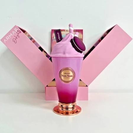 Armaf Yum Yum es una fragancia femenina floral-frutal dulce, juvenil y envolvente, lanzada en 2024 por Armaf. Su composición evoca un aroma jugoso, alegre y femenino, ideal para mujeres que buscan un perfume fresco, frutal y ligeramente gourmand para uso diario o salidas casuales.