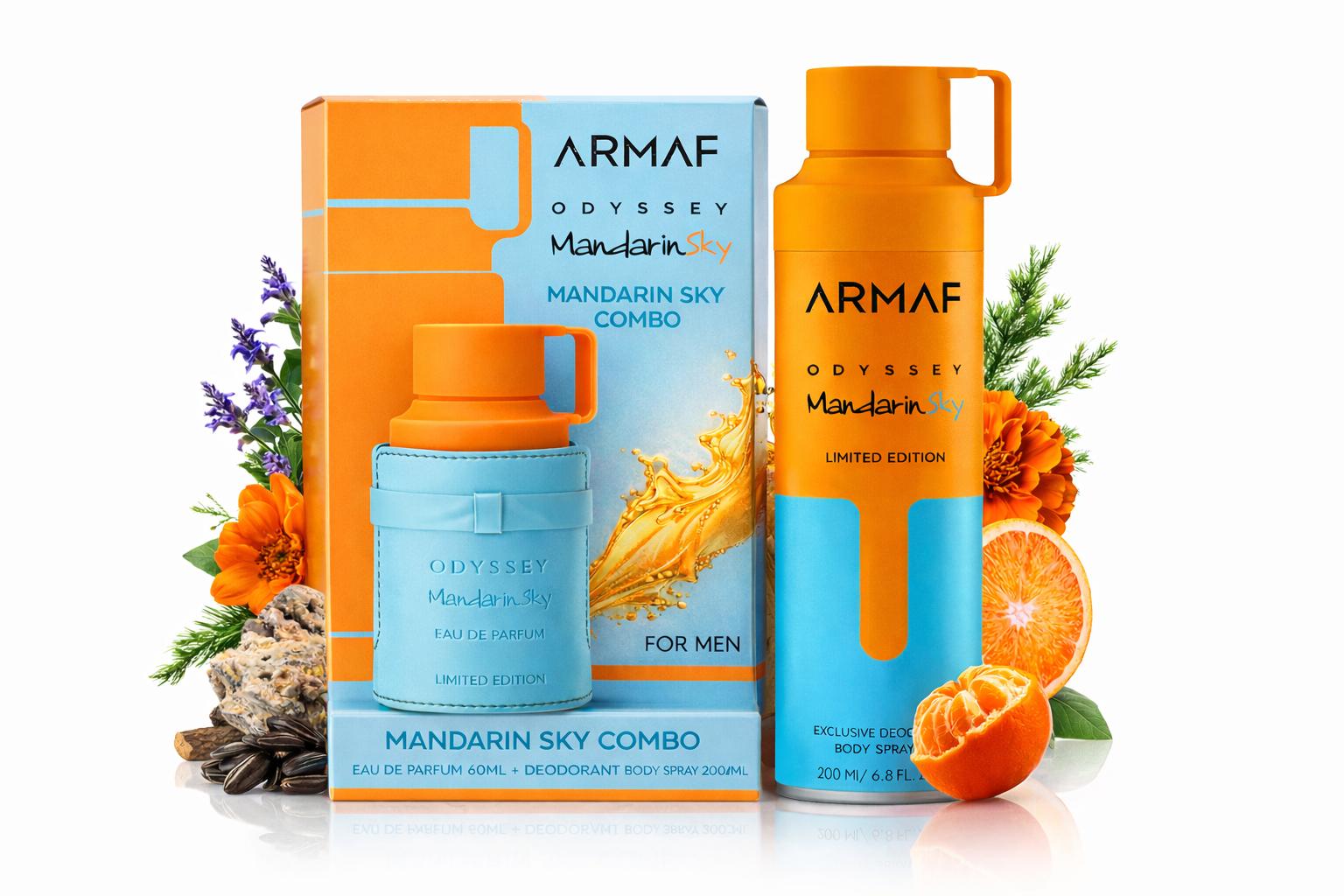 El Set de regalo Armaf Odyssey Mandarin Sky combina dos productos aromáticos esenciales para el cuidado masculino: un Eau de Parfum (60 ml) y un desodorante en spray (200 ml) con la misma firma olfativa. Está pensado para quien busca una experiencia aromática coherente y prolongada durante todo el día, con el complemento del desodorante para mantener la fragancia incluso entre aplicaciones del perfume.
