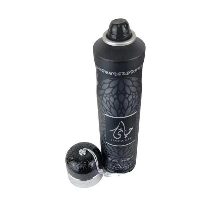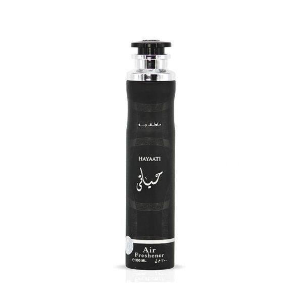 El Air Freshener Hayaati 300 ml de Lattafa es un ambientador en spray de origen árabe que aporta una fragancia fresca, dulce y ligeramente amaderada, ideal para crear un ambiente moderno y agradable. Está diseñado para neutralizar olores y perfumar eficazmente hogares, oficinas, vehículos y textiles como cortinas, sofás o alfombras.