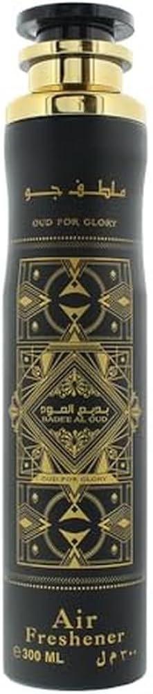 El Air Freshener Bade’e Al Oud For Glory 300 ml de Lattafa es un ambientador en spray de alta intensidad que perfuma los espacios con una fragancia oriental, profunda y lujosa, inspirada en el icónico perfume Bade’e Al Oud For Glory. Está diseñado para neutralizar olores y dejar una estela potente y duradera en hogares, oficinas, vehículos y textiles como cortinas, sofás o alfombras.